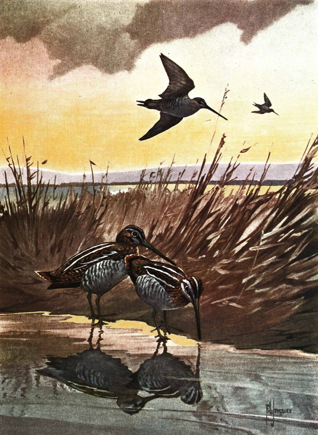The birds would get up as high as 100 to 200 yards, then take off as though they were going to leave the country. Some did leave, so far as I could tell, because you can’t follow a snipe’s flight very far. But one suddenly dived to the ground and settled about 300 yards away. That one ought to hold, I thought. I marked him good, and headed for him.