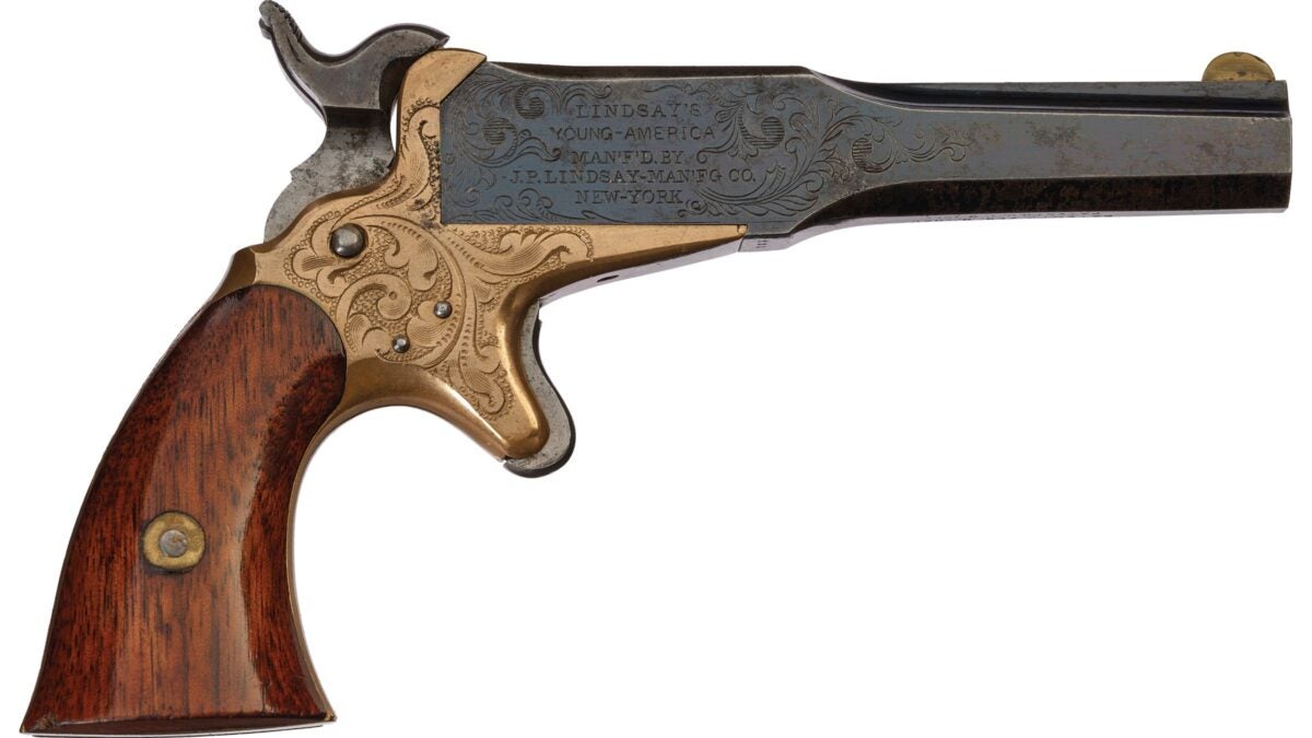 “Factory Engraved Lindsay ‘Young-America’ Two-Shot Pocket Pistol.” Rock Island Auction, www.rockislandauction.com/detail/4095/91/factory-engraved-lindsay-youngamerica-twoshot-pocket-pistol. Accessed 12 Aug. 2025.