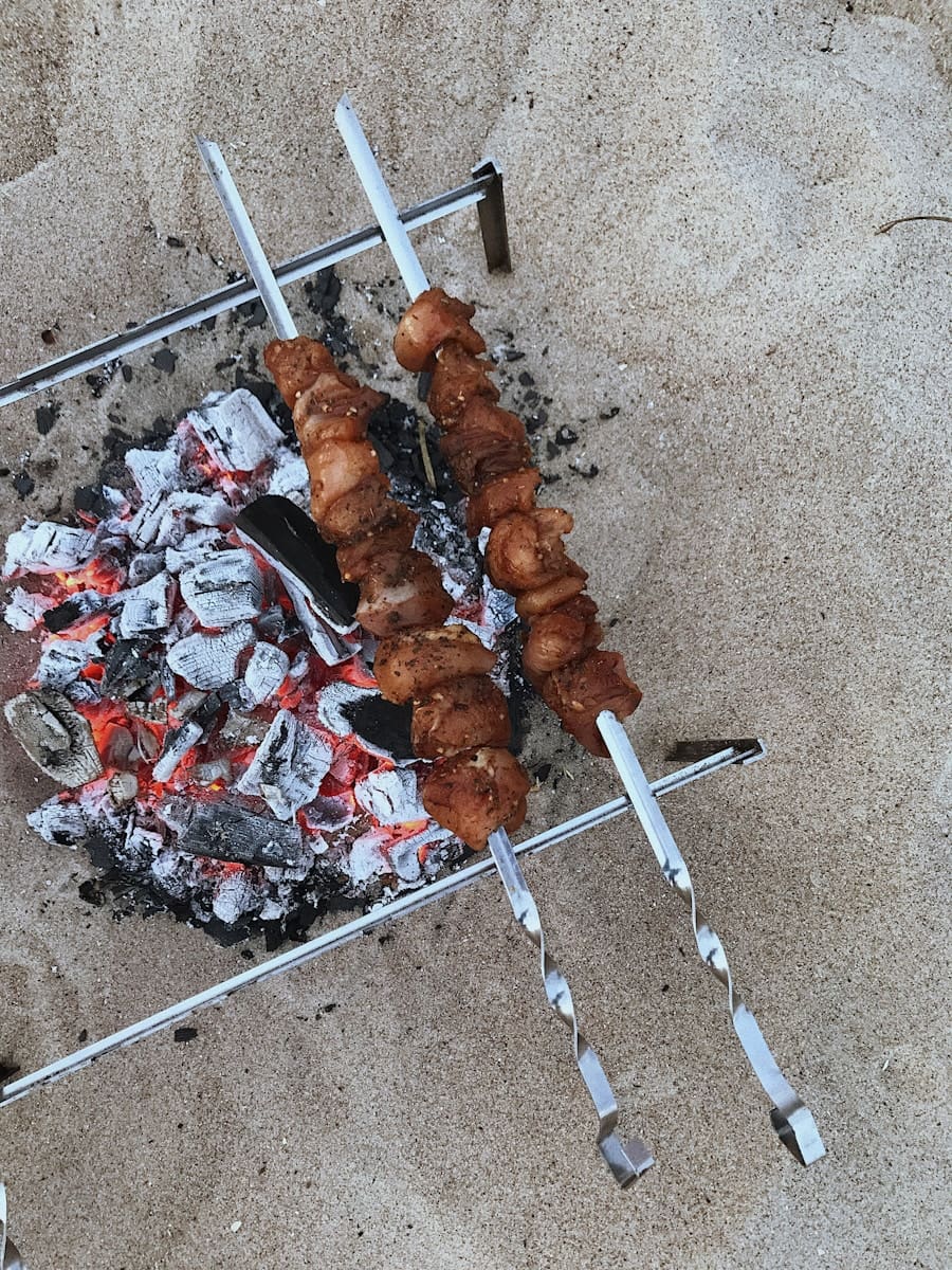 Always keep a bucket of water or sand nearby to extinguish flames if necessary. When cooking over an open flame, use long-handled utensils to keep your hands at a safe distance from the heat. Be mindful of wind direction to avoid smoke blowing into your face or onto your food.