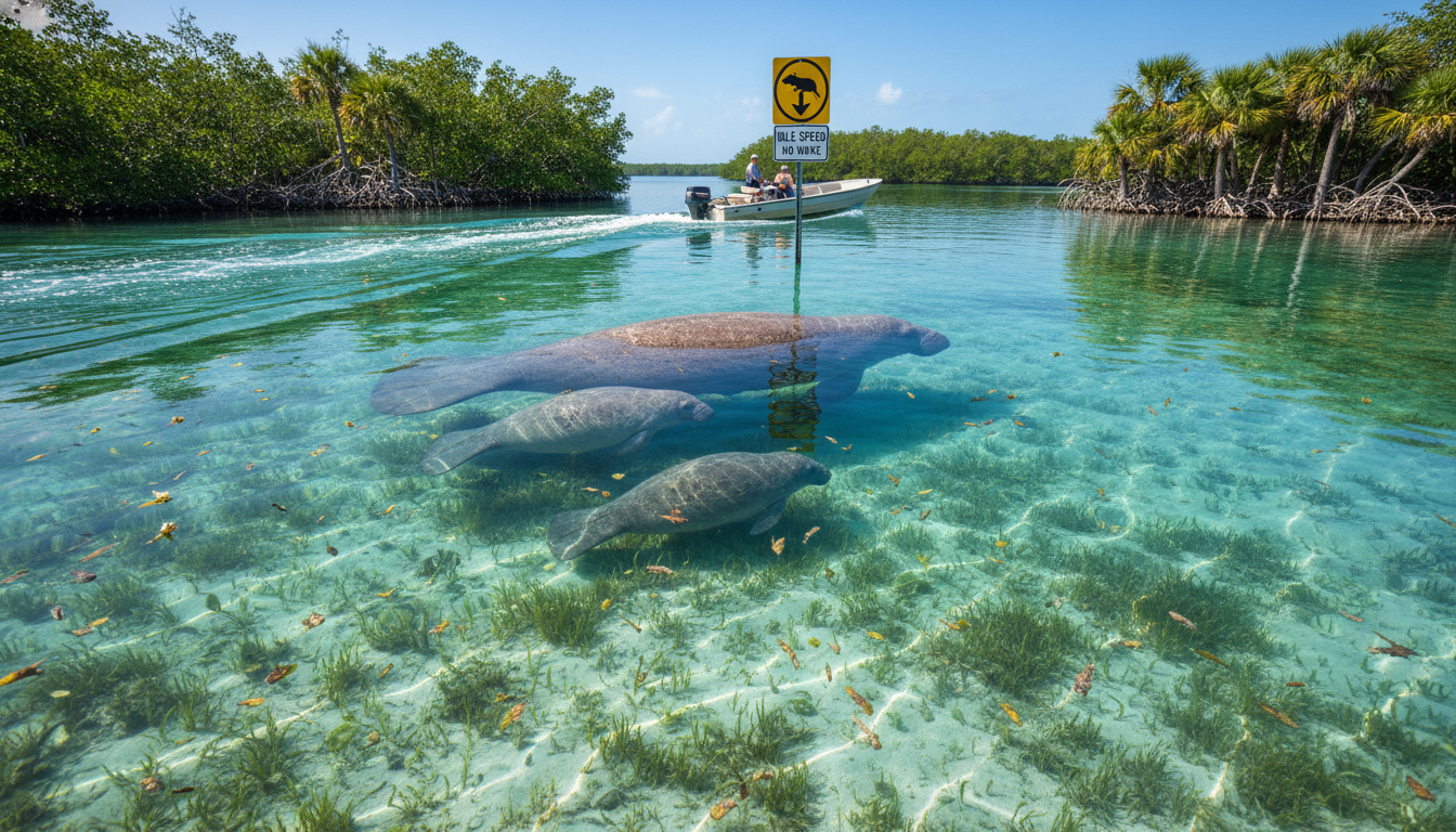 Stay Alert: Always be on the lookout for manatees, particularly in warmer, shallow waters.